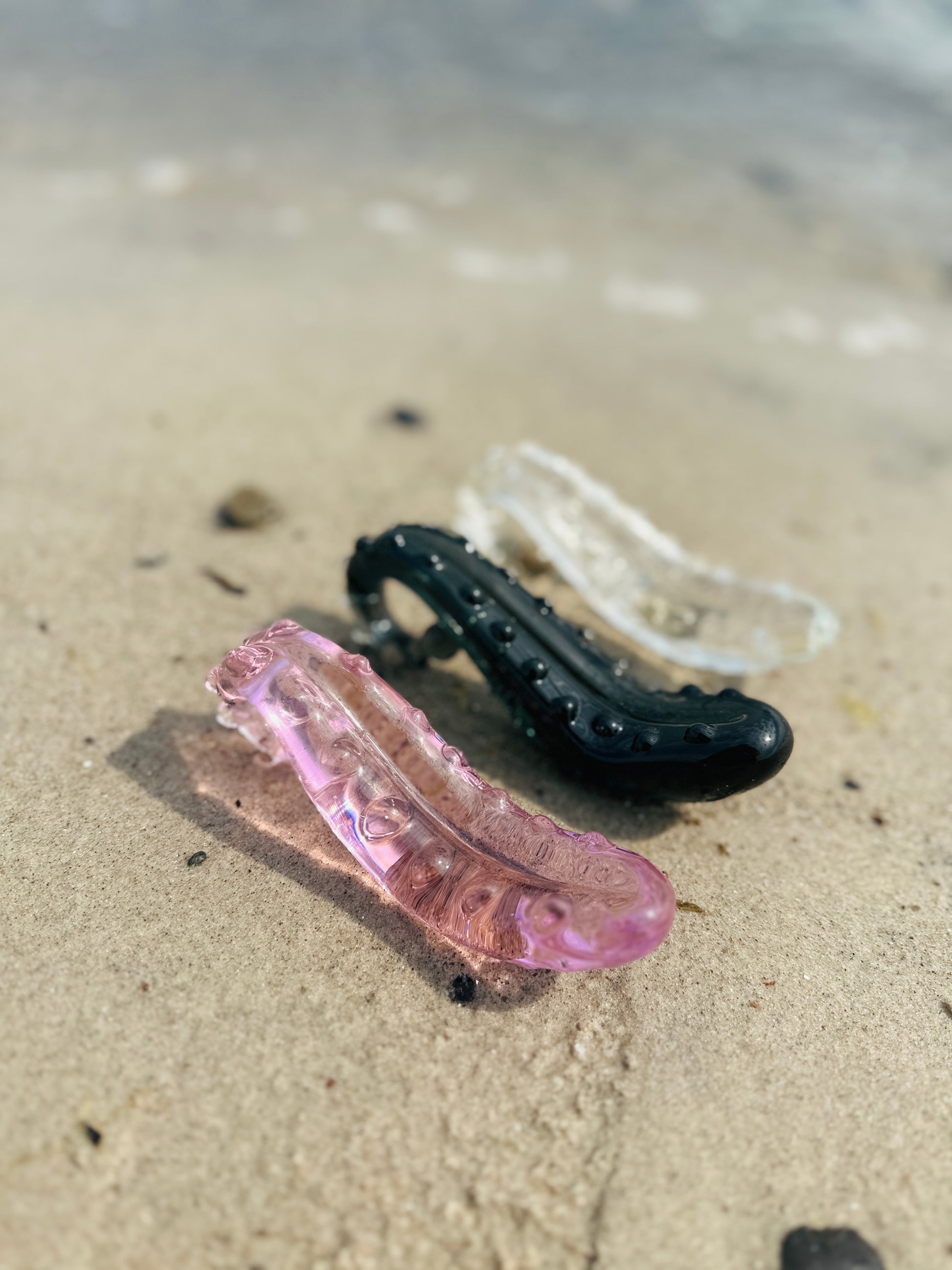 Denna bästsäljande glasdildo är känd som Den Magiska Sprutan™! Dess unika form liknar bläckfisktentakler och har en tungliknande yta som är perfekt för att stimulera g-punkten. Tillverkad av handblåst borosilikatglas är den både vacker och mångsidig och kan kylas eller värmas, beroende på dina önskemål och behov. Men se upp, för dess styrka och hårdhet kan inte bara massera den kvinnliga prostatan, utan också väcka din heliga nektar, ja, du läste rätt - den heliga fontänen! Utan tvekan kommer Den Magiska Sprutan™ Glasdildo att skicka vilken kvinna som helst direkt till sjunde himlen med sin förmåga att utlösa sprutorgasmer. Så ta kontroll och bli din egen magiker med denna fantastiska glasdildo!