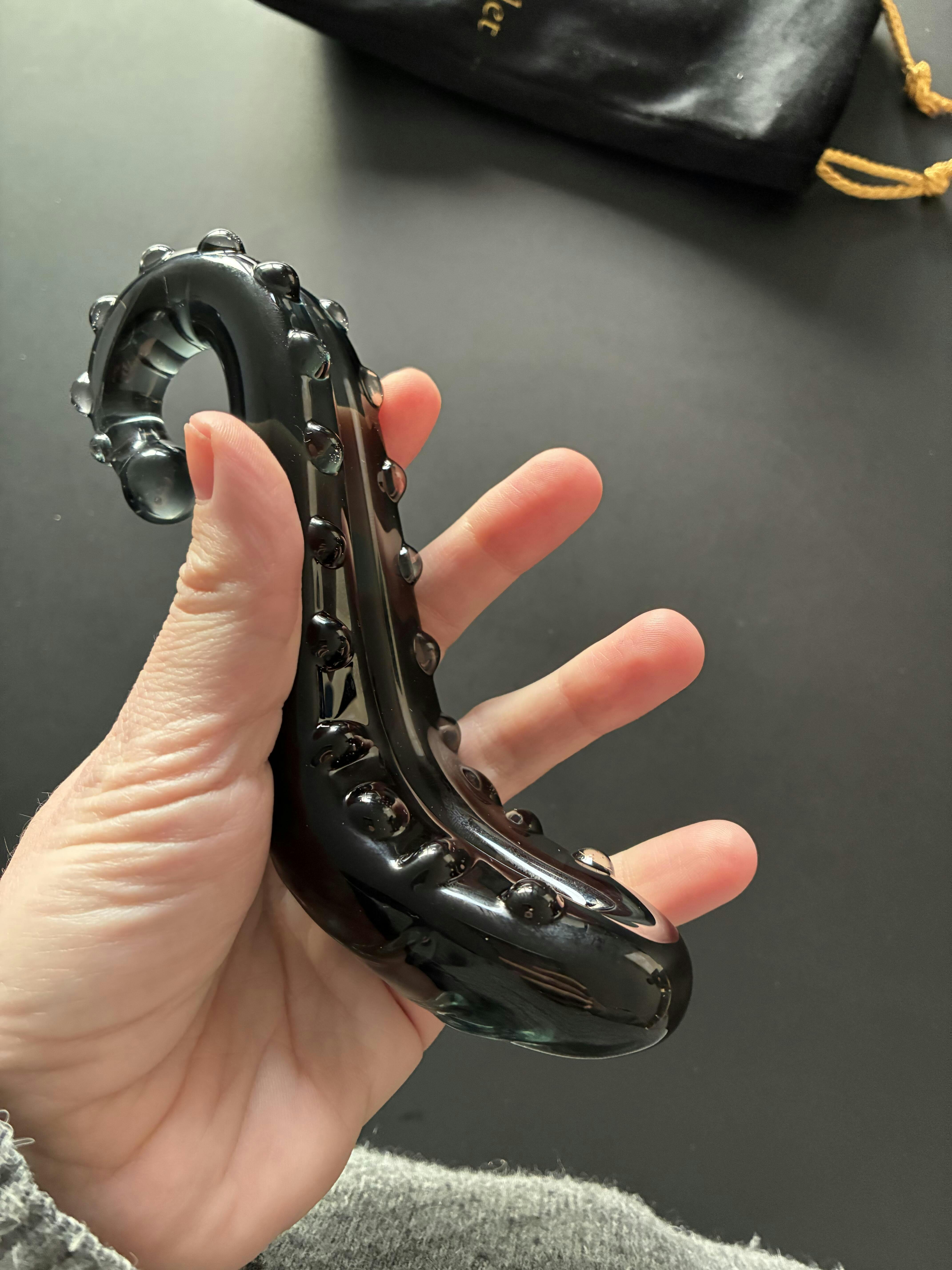 - En sidenfodrad velourväska att förvara din glasdildo i