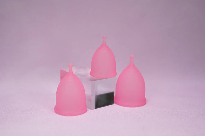 • En menskopp i önskad storlek, antingen x-small, medium-large eller large. Välj även mellan färgen transparent rosa eller regnbåge