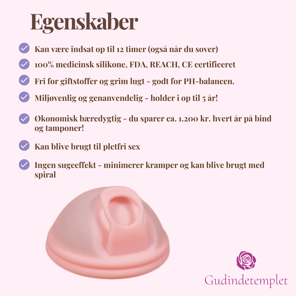Gudinnetemplets mensskiva är det perfekta valet för dig som vill ha en friare, säkrare och bekvämare mens. Vår skiva är gjord av 100 % medicinskt silikon vilket är helt säkert för kroppen.